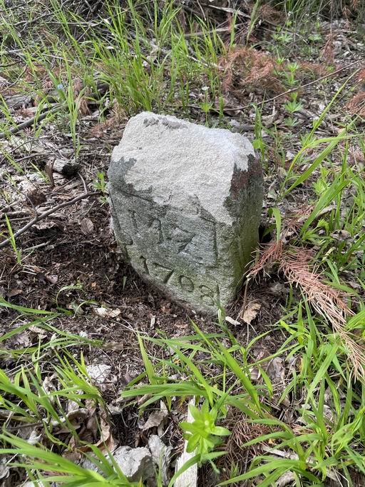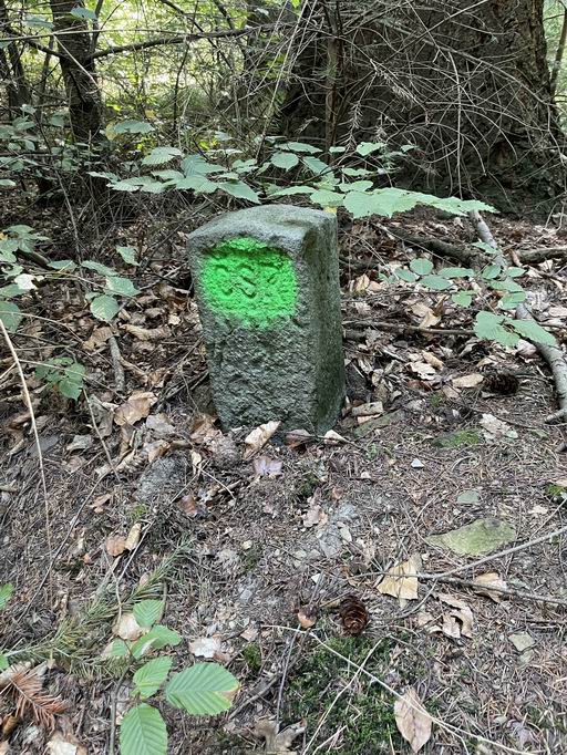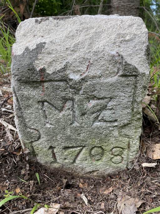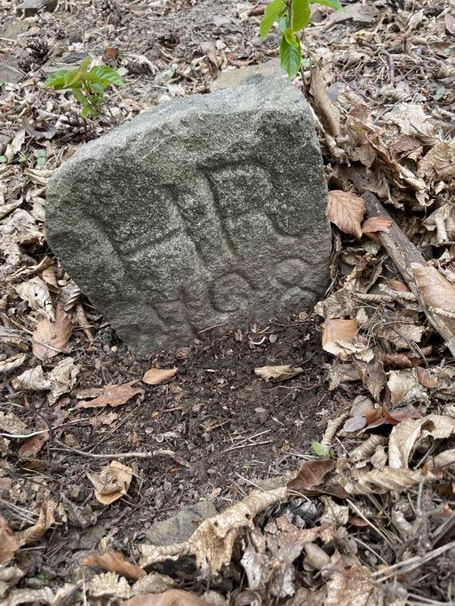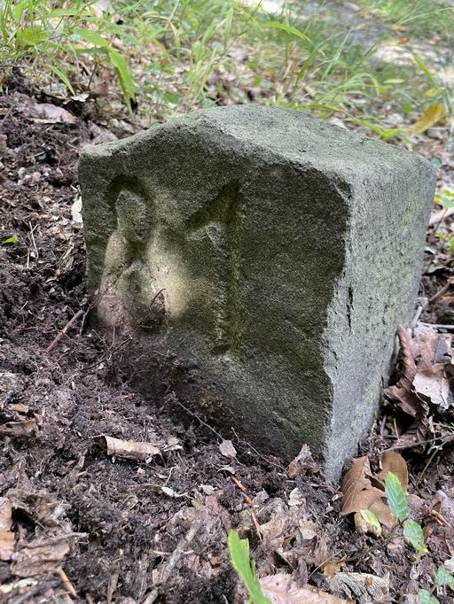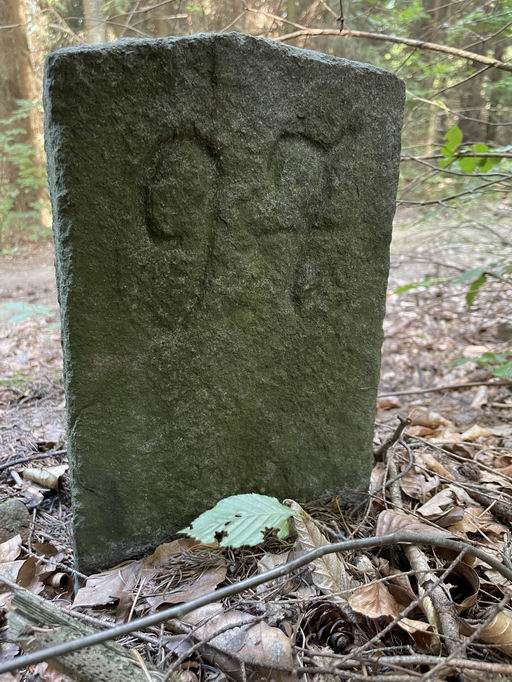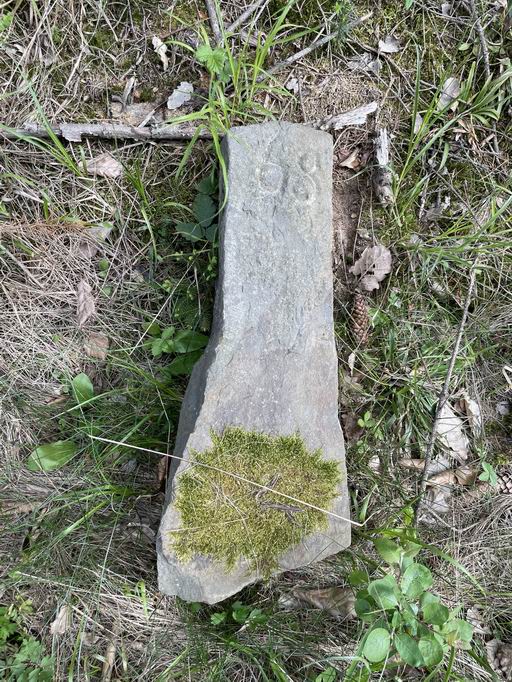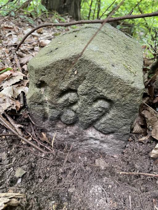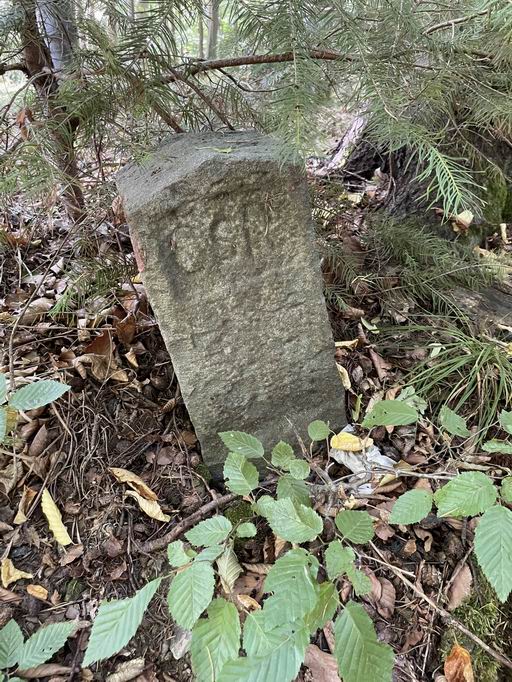 Hraničník MZ 1708 ČSR Zcela unikátní hraničník s označením MZ 1708 v ozdobné kartuši (snad označení bývalého panství Monasterium Zabrdowitz, Klášter Zábrdovice) a s později doplněným nápisem ČSR na zadní straně je zhotoven z hrubozrnného světlého pískovce neznámé provenience. Bohužel je v horní části poškozen (snad lesní technikou).