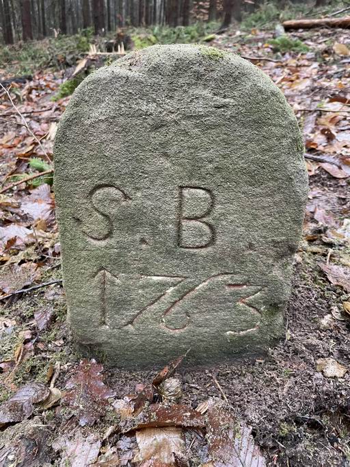Hraničníky – Vranov Boundary stones – Vranov Summary: The article describes boundary stones that can be found in Vranov village area. For more details on photos, feel free to contact me. Vranov u Brna se může pochlubit zajímavou historii spojenou s rodem Liechtenštějnů. Velmi známý je komplex kláštera sv. Františka z Pauly s kostelem Narození Panny Marie a hrobkou Liechtenštejnů zbudovanou v polovině 19. století. Okolí Vranova ukrývá i množství hraničních kamenů, které jsou díky unikátní poloze uprostřed lesů zachovány v hojném počtu a vytváří několik téměř kompletních linií. Hraniční kameny u Vranova zpracoval velmi podrobně kolega Martin Plšek, který zpracoval GPS pozice hraničníků dle dostupných podkladů a sestavil interaktivní mapu kamenů v terénu. M. Plšek k situaci u Vranova uvádí: Podle nálezů v terénu si Lichtenštejni majetek obehnali hraničními kameny v letech 1739 a 1763, tedy dlouho před Josefínskými reformami. Rok 1763 bývá vztahován k 1. vojenskému mapování území rakouského císařství (bez podrobného měření). Rok 1824 je počátkem budování triangulační zeměměřičské sítě na Moravě. V té době také zřejmě dochází k přebudování severní hraniční linie novými hraničníky. Impulzem mohly být potřeby II. vojenského mapování i přesnější zaměřování pozemků v krajině pro účely právě vznikajícího Císařského stabilního katastru (historický předchůdce dnešního katastru nemovitostí). Jižní úsek hranice byl dle údajů na kamenech kompletován v roce 1837. Na dochovaných katastrálních mapách Vranova z roku 1826 jsou severní hraničníky umístěny v lomových bodech hranice a nesou označení SB HP 1763. Stejně tak v katastrální evidenci z roku 1893. Zajímavostí může být, že na mapách ze stejného období, ale z pohledu okolních obcí, jsou označeny SB HP 1824. Nalezené mezníky tedy od sebe oddělovaly jednotlivá feudálních panství. Takto vytvořená linie se stala podkladem pro vznik katastrálních území, jaká známe dnes. V podstatě, jak to tehdy pánové vytyčili, tak to zůstalo do současnosti. Vranovsko-křtinský areál představuje bývalé Pozořické panství (Herrschaft Pozoritz) knížectví Lichtenštejnského (Fürstentum Liechtenstein). Severní hranice sousedila s Panstvím kuřimským (Herrschaft Gurein), které toho času spadalo pod město Brno (Stadt Brünn). Jižním sousedem bylo Staré Brno (Herrschaft Alt Brünn). Kameny jsou z vranovské strany číslované. V severní části mají zpravidla vytesané znaky FL SB HG a někde i letopočet 1824. V jižní části pak symboly FL HAB a letopočet 1837. Podél cest nebo potoka jsou mezníky v páru po obou stranách ve vzdálenosti cca 4,1m. Protilehlý kus nese povětšinou označení HP SB 1824 (sever), popř. HP HAB 1837 (jih) a je bez čísla. Vranovské hraničníky jsou unikátní i komplexností svých nápisů. M. Plšek uvádí, že podél hranice se lze setkat s následujícími označeními: • S.B. – Stadt Brünn (město Brno) • HG – Herrschaft Gurein (Panství kuřimské) • FL – Fürst von Liechtenstein (kníže Lichtenštejn) • HP – Herrschaft Pozoritz (Panství pozořické) • FS – Fürst von Schönburg-Hartenstein (kníže Schönburg-Hartenstein) • HAB – Herrschaft Alt Brünn (Panství Staré Brno) • HR – Herrschaft Rzeczkowitz (Panství Řečkovice) V tomto článku si uvedeme některé zajímavé ukázky hraničníků v okolí Vranova. Nejprve kameny nalezené přímo v obci. U křížku v jižní části obce je pěkně zachovalý hraničník FL 185, kde jsou písmena FL zřetelně vysekána přes starší číslo 148.