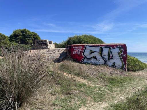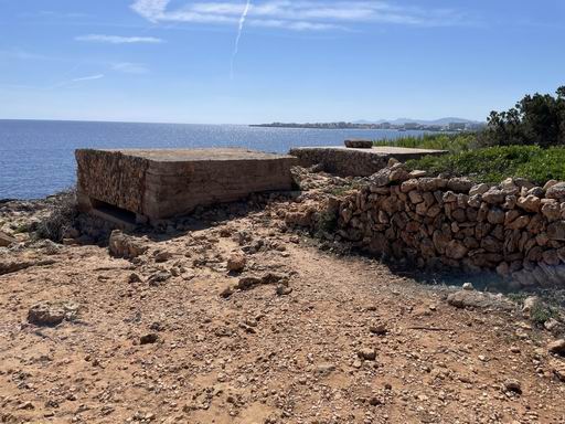 Objekty z 20. století Na pláži severně od letoviska Sa Coma se nachází dva typově podobné objekty kontrolují pláž vzdálené od sebe 200 m. Pravděpodobně se jedná spíše o pozorovatelny. V zadní části je šachtový vstup krytý zvýšenou stěnou. Dříve tam mohl být nějaký poklop či podobné uzavření. Spojovací chodbička s dobře viditelnou klenbou vede do pozorovací/střelecké místnosti s jediným úzkým čelním průzorem/střílnou. Kvůli blízkosti turistického letoviska jsou stěny posprejovány a v objektech jsou jako obyčejně odpadky. První objekt je blíže k parkovišti u turistického centra.