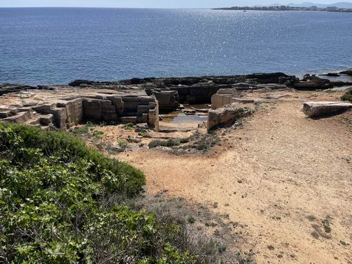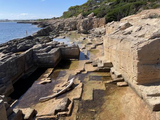 Velmi zajímavá lokalita se nachází cca 1 km jižně od pevnosti na mořském pobřeží. Jedná se o historický lom na kámen Mares použitý ke stavbě pevnosti. Z petrologického hlediska se jedná o vápence svrchního miocénu (mladší třetihory, stáří cca 20 milionů let). Tyto sedimenty na pobřeží podléhají silné korozi ve slaných podmínkách a u města Porto Cristo se v nich nachází i známé jeskyně Cuevas Drach (Dračí jeskyně). Shodou okolností, kterou stavitelé pevnosti Castell de sa Punta de n’Amer jistě uvítali, jsou vápence uloženy se sklonem cca 45 stupňů v lavicích o mocnosti 35 cm. Jílové vrstvičky, které lavice oddělují, umožnily lámání stavebních kamenů právě s výškou 35 cm. Minimálně jeden rozměr byl tedy u vylomeného kamene většinou pevně dán. V okolí lomu je možné v křoví narazit na místa, kde kameníci lámali kámen i přímo u cesty, kde byly lavice v dobře přístupné pozici. Je neuvěřitelné, že některé cestovatelské blogy na webu bez mrknutí oka uvádějí lom jako „zajímavě tvarované pobřeží“, aniž by se autoři vůbec zamysleli nad možností, že se jedná o dílo lidských rukou...
