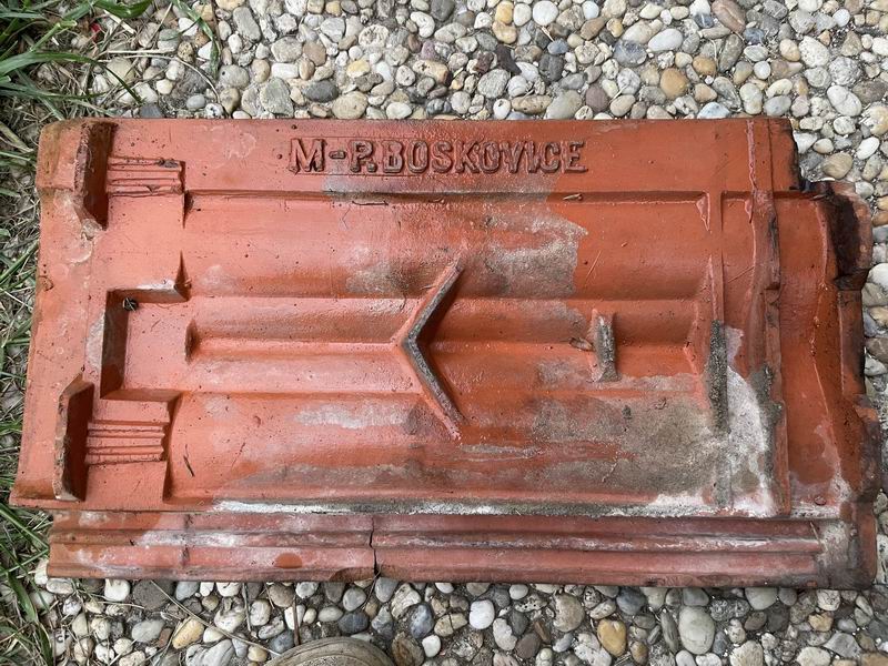 Sbírka střešních tašek se značkami Collection of Roof Tiles with Markings Summary: The article describes my collection of old roof tiles with various markings. For more details on text and/or photos, feel free to contact me. Tento článek je úplná fotogalerie mé sbírky střešních tašek se značkami. Pokud vás některá z níže vystavených tašek zaujme, můžete mi napsat e-mail. Kusy, které mám na výměnu ve více exemplářích, jsou označeny. 001 CGK BOHUNICE Asi nejběžnější taška nalézaná v širším okolí Brna. CGK (Cihelny Gustava Klimenta) byla za socialismu (1951–1970) společnost vzniklá sloučením řady cihelen, mj. brněnské firmy G. Kohn a syn. Dvoufalcová taška, vyškrabaná značka 80, verze se 2 příčnými výztuhami pod názvem cihelny, který je zrcadlově obrácen. Těchto cihel byly vyrobeny miliony kusů, takže se jedná asi o nejčetnější chybnou značku výrobce v historii československé průmyslové výroby. Chronologie brněnské Kohnovy cihelny: (1881) G. Kohn & Sohn, Brünn (1928) G. Kohn a syn, parní cihelny v Brně-Bohunicích (1939) Brünn Bohonitzer Ziegelwerke (1945) Brno-Bohunické cihlářské závody a továrna na hliněné zboží (1947) Moravskoslezské cihelny, nár. pod., závod Bohunice (1950) Bohunické cihelny n. p., Brno-Bohunice (1951) Cihelny Gustava Klimenta, n. p., Brno (CGK Bohunice) (1970?) Brněnské cihelny, státní podnik