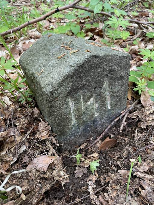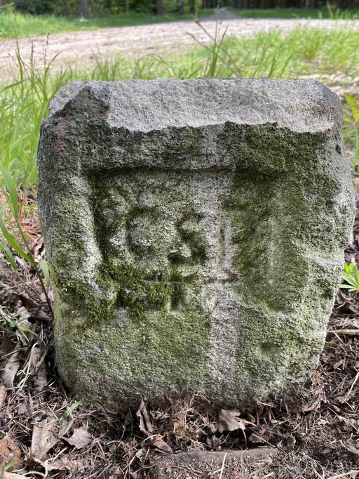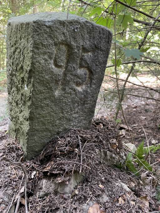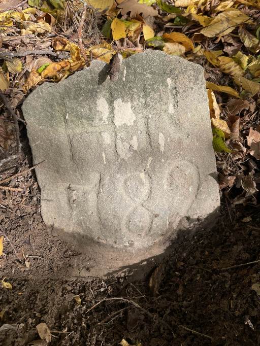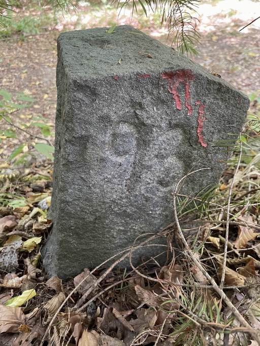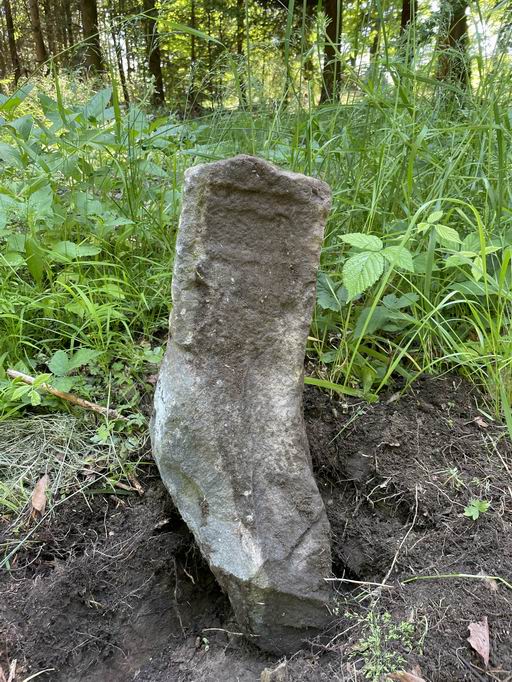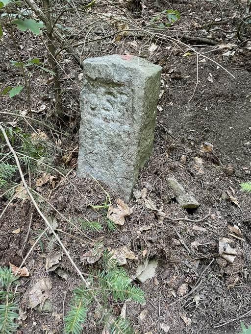 Hraničník MZ 1708 ČSR Zcela unikátní hraničník s označením MZ 1708 v ozdobné kartuši (snad označení bývalého panství Monasterium Zabrdowitz, Klášter Zábrdovice) a s později doplněným nápisem ČSR na zadní straně je zhotoven z hrubozrnného světlého pískovce neznámé provenience. Bohužel je v horní části poškozen (snad lesní technikou).