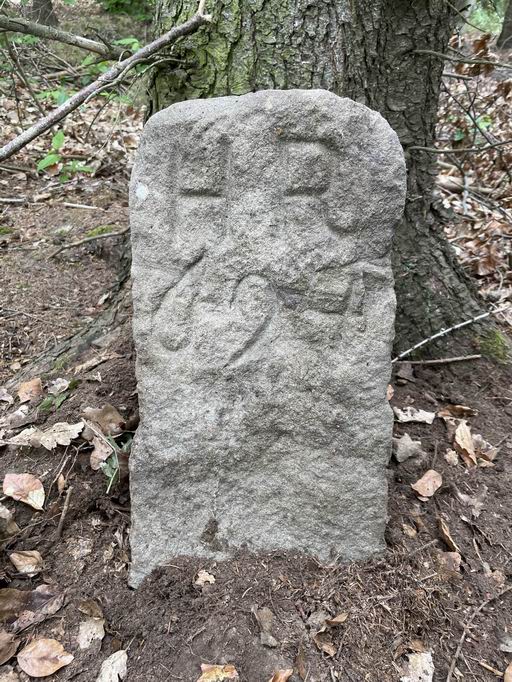 Krásensko – hraničníky Krasensko – Boundary stones Summary: The article describes boundary stones with designation HR (Herrschaft Raiz, Estate Rajec) and SV (unkknown origin) that were found in Krasensko village area. For more details on photos, feel free to contact me. Hraničník HR U Krásenska se podařilo nalézt 1 zachovalý hraničník HR (Herrschaft Raitz, Panství Rájec) s číslem 624. Byl povalen u okraje lesa a znovu vztyčen poblíž místa nálezu autorem stránek. Hraničník je vysekán z masívní hrubozrnné kulmské droby. Poblíž procházela historická hranice rájeckého panství.