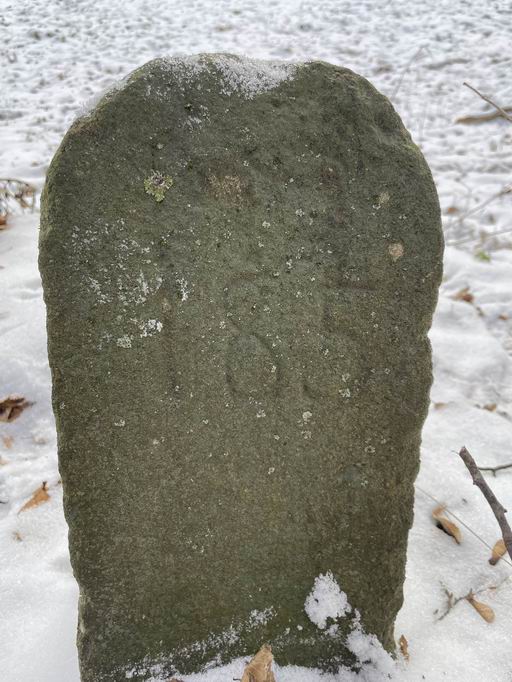 Velmi zvláštní hraničník s písmeny SV se nachází u silnice směrem na Blansko v horní části obce. Je zhotoven ze zcela netradičního materiálu – světle béžového vápence druhohorního či třetihorního stáří. Na první pohled vypadá velmi „čerstvě“, povrch kamene je bez patiny, bez lišejníku. Pravděpodobně by nebyl důvod považovat ho za historický hraničník, kdyby ovšem autor nenalezl kousek od motokrosového areálu fragment kamene ze stejného materiálu s patrným písmenem V. Zůstává otázkou, zda tyto kameny souvisí nějak s církevní historií Vranova nebo se opravdu jedná o novodobé výtvory.