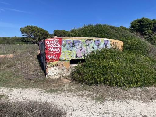 Objekty z 20. století Na pláži severně od letoviska Sa Coma se nachází dva typově podobné objekty kontrolují pláž vzdálené od sebe 200 m. Pravděpodobně se jedná spíše o pozorovatelny. V zadní části je šachtový vstup krytý zvýšenou stěnou. Dříve tam mohl být nějaký poklop či podobné uzavření. Spojovací chodbička s dobře viditelnou klenbou vede do pozorovací/střelecké místnosti s jediným úzkým čelním průzorem/střílnou. Kvůli blízkosti turistického letoviska jsou stěny posprejovány a v objektech jsou jako obyčejně odpadky. První objekt je blíže k parkovišti u turistického centra.