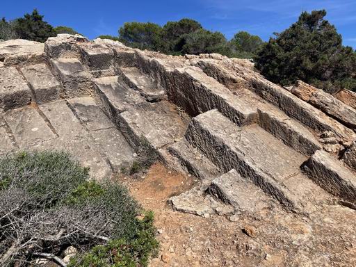 Velmi zajímavá lokalita se nachází cca 1 km jižně od pevnosti na mořském pobřeží. Jedná se o historický lom na kámen Mares použitý ke stavbě pevnosti. Z petrologického hlediska se jedná o vápence svrchního miocénu (mladší třetihory, stáří cca 20 milionů let). Tyto sedimenty na pobřeží podléhají silné korozi ve slaných podmínkách a u města Porto Cristo se v nich nachází i známé jeskyně Cuevas Drach (Dračí jeskyně). Shodou okolností, kterou stavitelé pevnosti Castell de sa Punta de n’Amer jistě uvítali, jsou vápence uloženy se sklonem cca 45 stupňů v lavicích o mocnosti 35 cm. Jílové vrstvičky, které lavice oddělují, umožnily lámání stavebních kamenů právě s výškou 35 cm. Minimálně jeden rozměr byl tedy u vylomeného kamene většinou pevně dán. V okolí lomu je možné v křoví narazit na místa, kde kameníci lámali kámen i přímo u cesty, kde byly lavice v dobře přístupné pozici. Je neuvěřitelné, že některé cestovatelské blogy na webu bez mrknutí oka uvádějí lom jako „zajímavě tvarované pobřeží“, aniž by se autoři vůbec zamysleli nad možností, že se jedná o dílo lidských rukou...