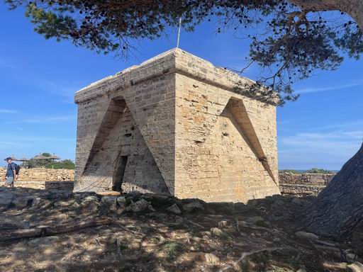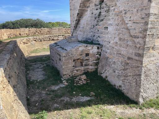 Mallorca – pobřežní opevnění Mallorca – Coastal Fortifications Summary: The article desribes coastal fortifications in the island of Mallorca. These objects include 17th century coastal defence tower called Castell de sa Punta de n’Amer and 3 concrete blocks dating back to 20th century. V tomto článku jsou popsány objekty poblíž letoviska Sa Coma na Mallorce. Barokní pevnost Castell de sa Punta de n’Amer Nejvýznamější fortifikační památkou oblasti je bezesporu Castell de sa Punta de n’Amer – historická obranná věž ze 17. století. Věž byla postavena z místního vápence Mares k ochraně proti pirátským útokům a sloužila jako součást mallorského pobřežního obranného systému, kde byla ubytována malá posádka. Dnes je zrekonstruovaná a volně přístupná, s expozicí o historii věže. Nachází se v chráněné přírodní oblasti Punta de n’Amer a je dosažitelná pěšími stezkami z Cala Millor a Sa Coma. Díky poloze v ose poloostrova mohla její děla postřelovat zálivy po obou stranách výběžku do moře. Stavba má zajímavý diagonálně řešené krakorce na každé ze 4 stran. Pod každým je úzká obdélníková střílna o rozměrech 15 x 50 cm pro obrannou palbu z ručních zbraní. Padací most (nebo jeho replika) je dnes plně funkční. V objektu je malá expozice dobové výzbroje, na střešním ochozu je umístěn kanón, který naznačuje primární účel pevnosti – vedení dělostřelecké palby na námořní cíle. V příkopu vysekaném ve vápencové skále je nepůvodní novější vojenská stavba (snad sklad, pec nebo cisterna). Návštěva nabízí zajímavý pohled do vojenské minulosti Mallorky a strategického významu pobřežních opevnění.